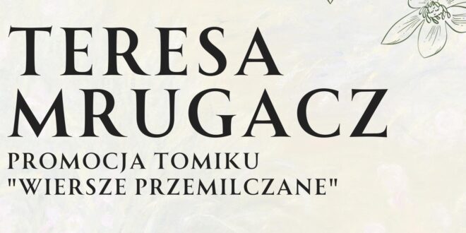 Powiatowa i Miejska Biblioteka Publiczna w Bochni zaprasza na promocję najnowszego tomiku poetyckiego Teresy Mrugacz pt. „Wiersze przemilczane”, wydanego nakładem Wydawnictwa Regis, 16 września 2025 r. godz. 17.30, sala klubu Biblioteki (I pt.).