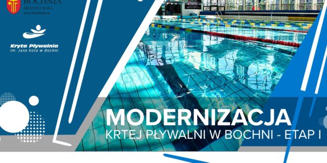 18 lipca 2025 roku została podpisana umowa na realizację I etapu modernizacji Krytej Pływalni w Bochni. Informujemy, że od 25 sierpnia br. rozpoczną się prace demontażowe technologii obiegu jacuzzi oraz basenu rekreacyjnego.