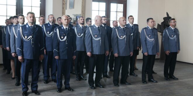 Powiatowe Obchody Święta Policji odbyły się we wtorek na Zamku Kmitów i Lubomirskich w Nowym Wiśniczu. Uroczysta zbiórka dała możliwość złożenia serdecznych życzeń i gratulacji zarówno funkcjonariuszom Komendy Powiatowej Policji w Bochni, Komisariatu Policji w Nowym Wiśniczu oraz Posterunku Policji w Trzcianie, jak i podziękowania za współpracę i codzienną pomoc wszystkim zaproszonym gościom.