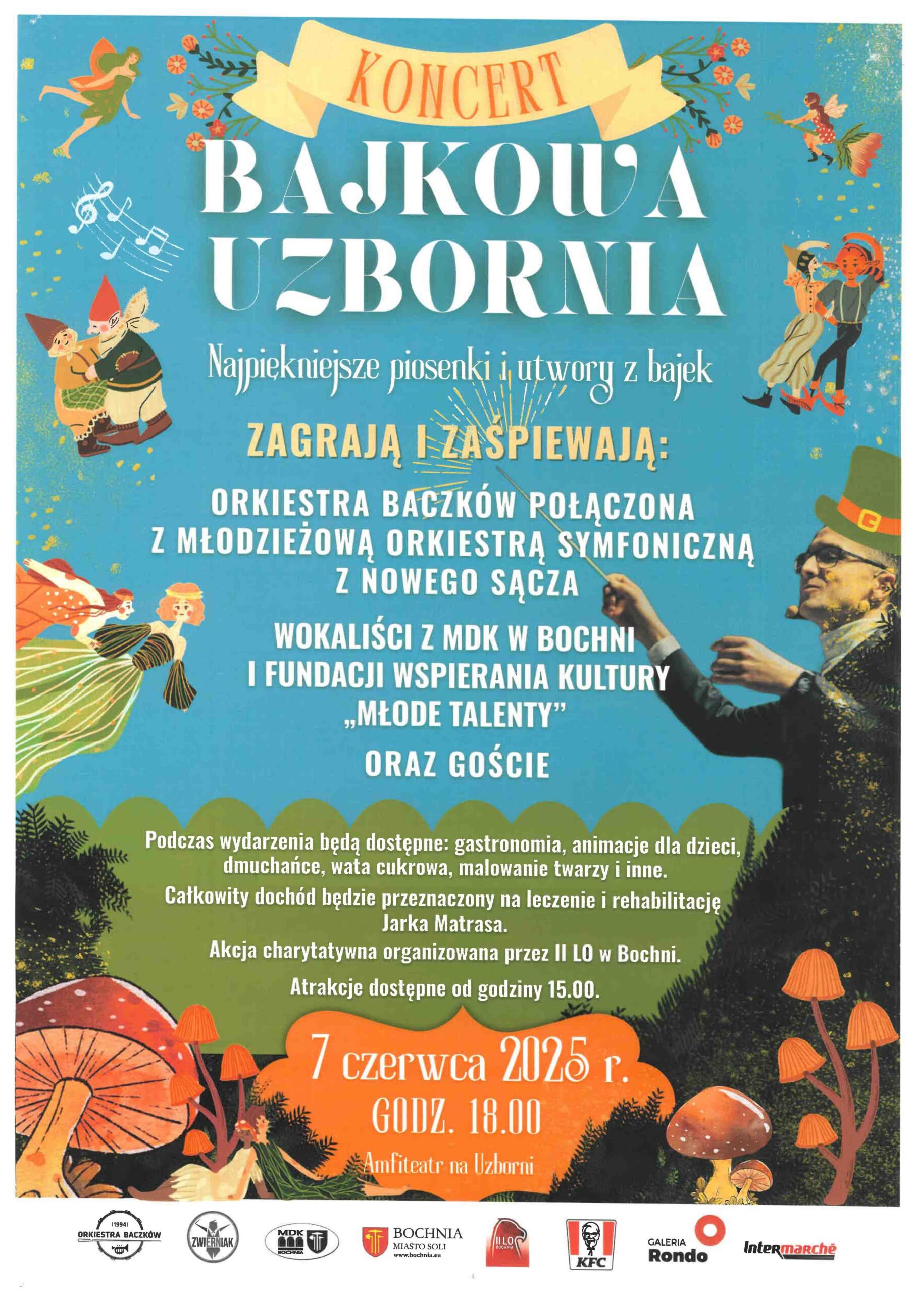 Już w tę sobotę 7 czerwca 2025 r. w amfiteatrze na Uzborni odbędzie się koncert pełen najpiękniejszych piosenek i utworów z bajek, które przeniosą widownię w świat dziecięcych marzeń i wspomnień. Na scenie wystąpi około 100 młodych artystów pod batutą Wojciecha Zwierniaka. Koncert poprzedzi szereg atrakcji dla dzieci i dorosłych przygotowany przez II LO w Bochni, te dostępne będą już od godziny 15.00, natomiast koncert rozpocznie się o godz. 18.00.