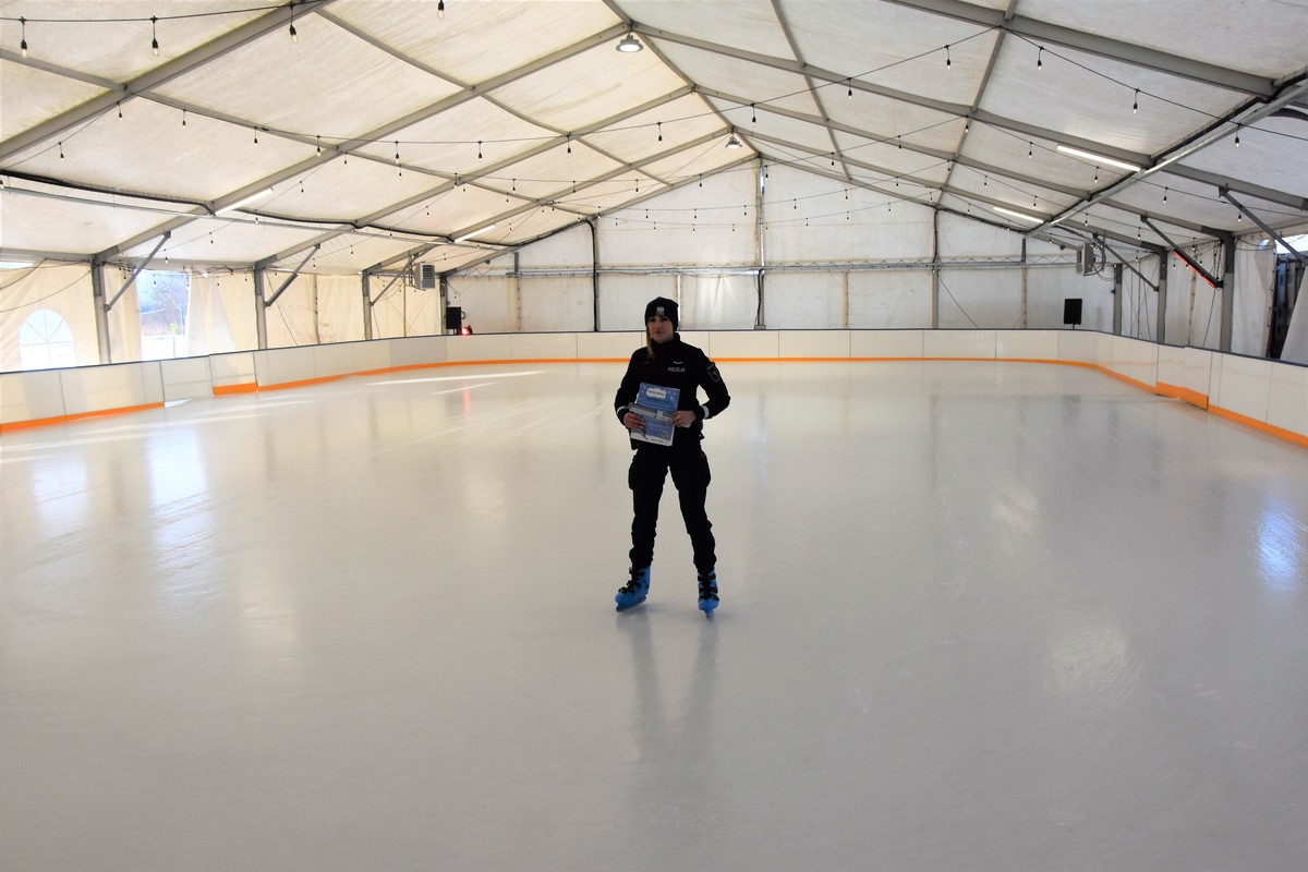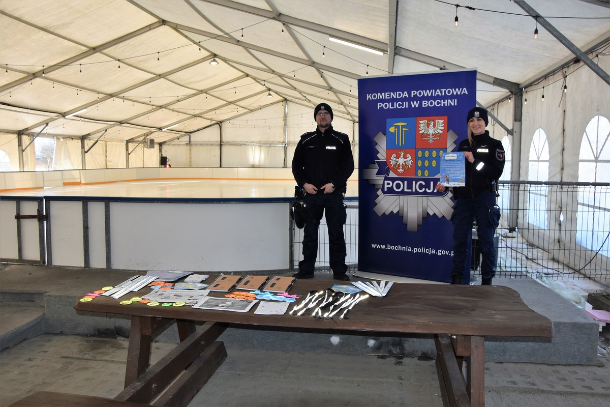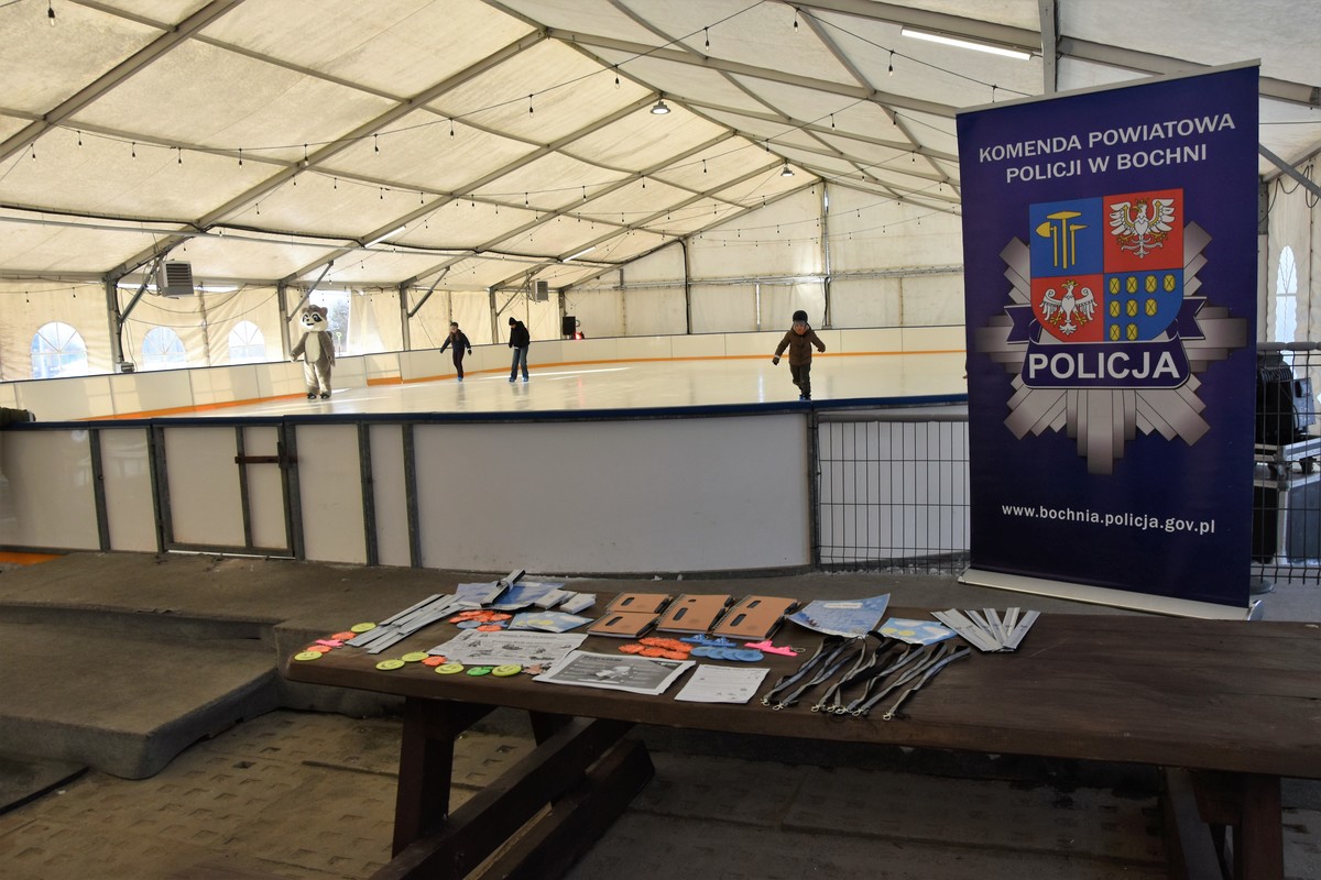 Bocheńska policjantka na płycie lodowiska przeprowadziła krótkie prelekcje na temat bezpieczeństwa podczas okresu zimowej przerwy w nauce. Wśród najważniejszych omówionych przez nią zasad znalazły się te związane z bezpieczeństwem podczas zabaw na śniegu, lodowisku i podczas kuligów. Funkcjonariuszka przedstawiła profilaktykę związaną z prawidłowym poruszaniem się na sankach, łyżwach i nartach oraz opowiedziała o możliwym niebezpieczeństwie i konsekwencjach wchodzenia na zamarznięty lód zbiorników wodnych.