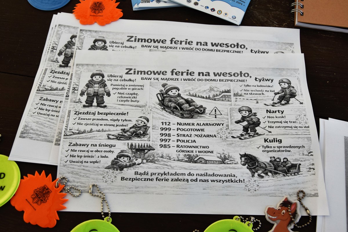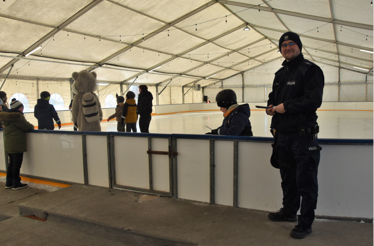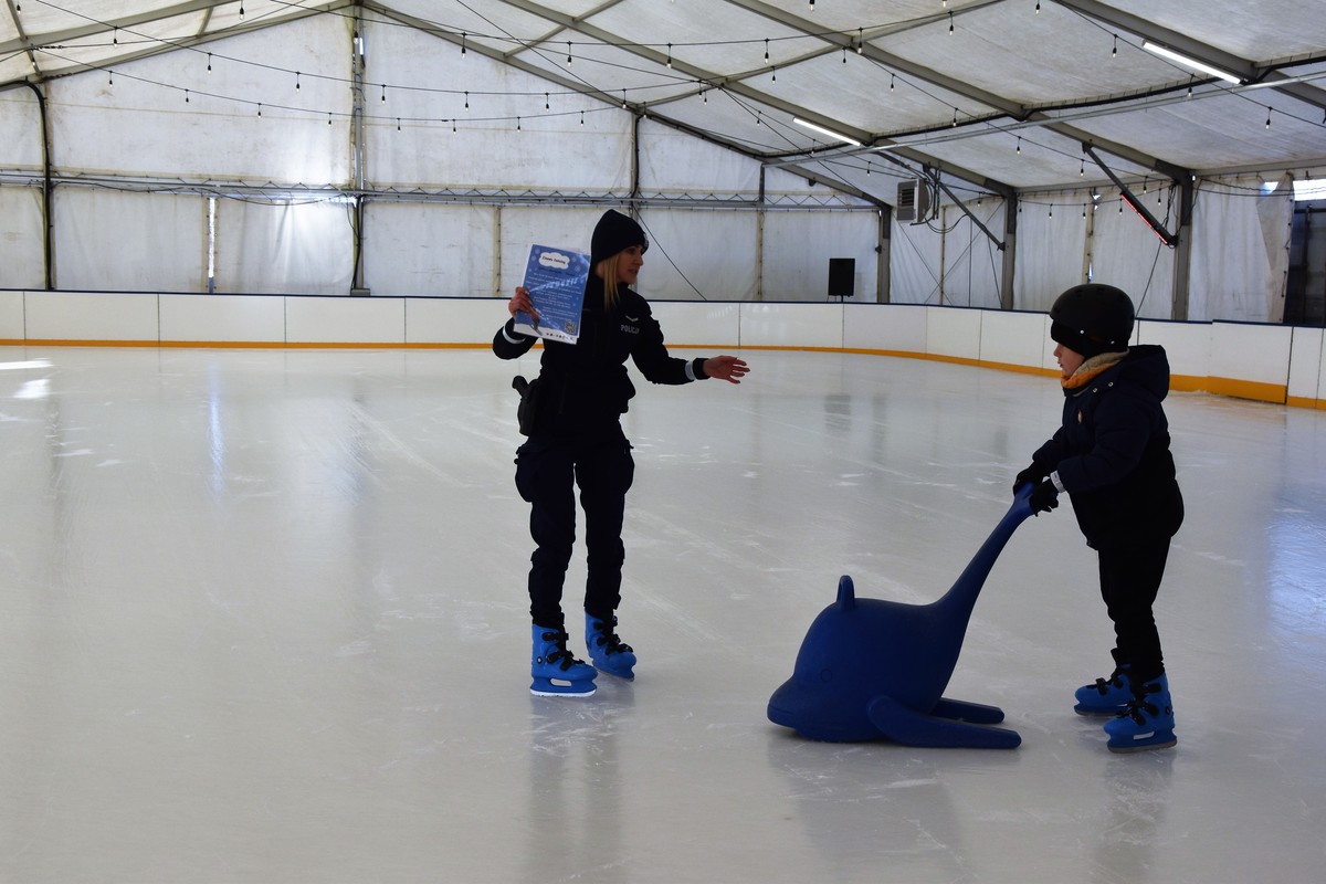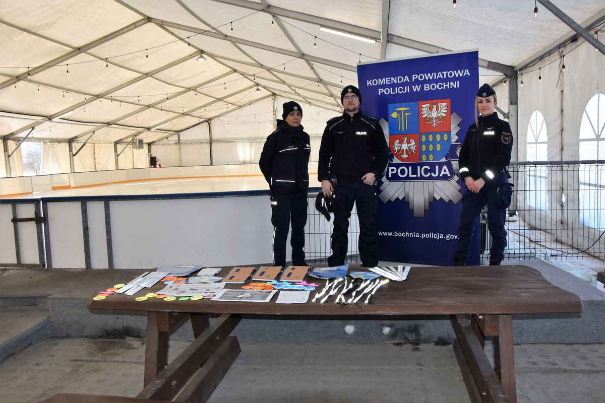 Bocheńska policjantka na płycie lodowiska przeprowadziła krótkie prelekcje na temat bezpieczeństwa podczas okresu zimowej przerwy w nauce. Wśród najważniejszych omówionych przez nią zasad znalazły się te związane z bezpieczeństwem podczas zabaw na śniegu, lodowisku i podczas kuligów. Funkcjonariuszka przedstawiła profilaktykę związaną z prawidłowym poruszaniem się na sankach, łyżwach i nartach oraz opowiedziała o możliwym niebezpieczeństwie i konsekwencjach wchodzenia na zamarznięty lód zbiorników wodnych.