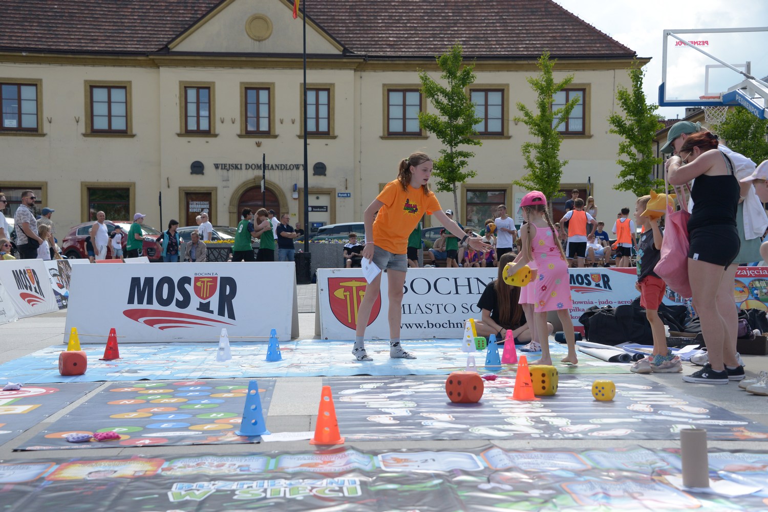 Na uczestników wydarzenia czekało mnóstwo atrakcji – od występów młodych artystów z sekcji Miejskiego Domu Kultury w Bochni, przez warsztaty plastyczne i taneczne, aż po gry sportowe, zabawy językowe i matematyczne, wielkoformatowe puzzle, jengę i konkursy z nagrodami. Dużym zainteresowaniem cieszyło się także stoisko „Prezent z drugiej ręki”, warsztaty pierwszej pomocy prowadzone przez młodzież z I LO i OSP Dołuszyce oraz edukacyjne spotkania z leśnikami z Nadleśnictwa Brzesko. Dużo radości najmłodszym sprawiła też przechadzająca się po Rynku Maskotka oraz możliwość obejrzenia z bliska sportowych pojazdów.