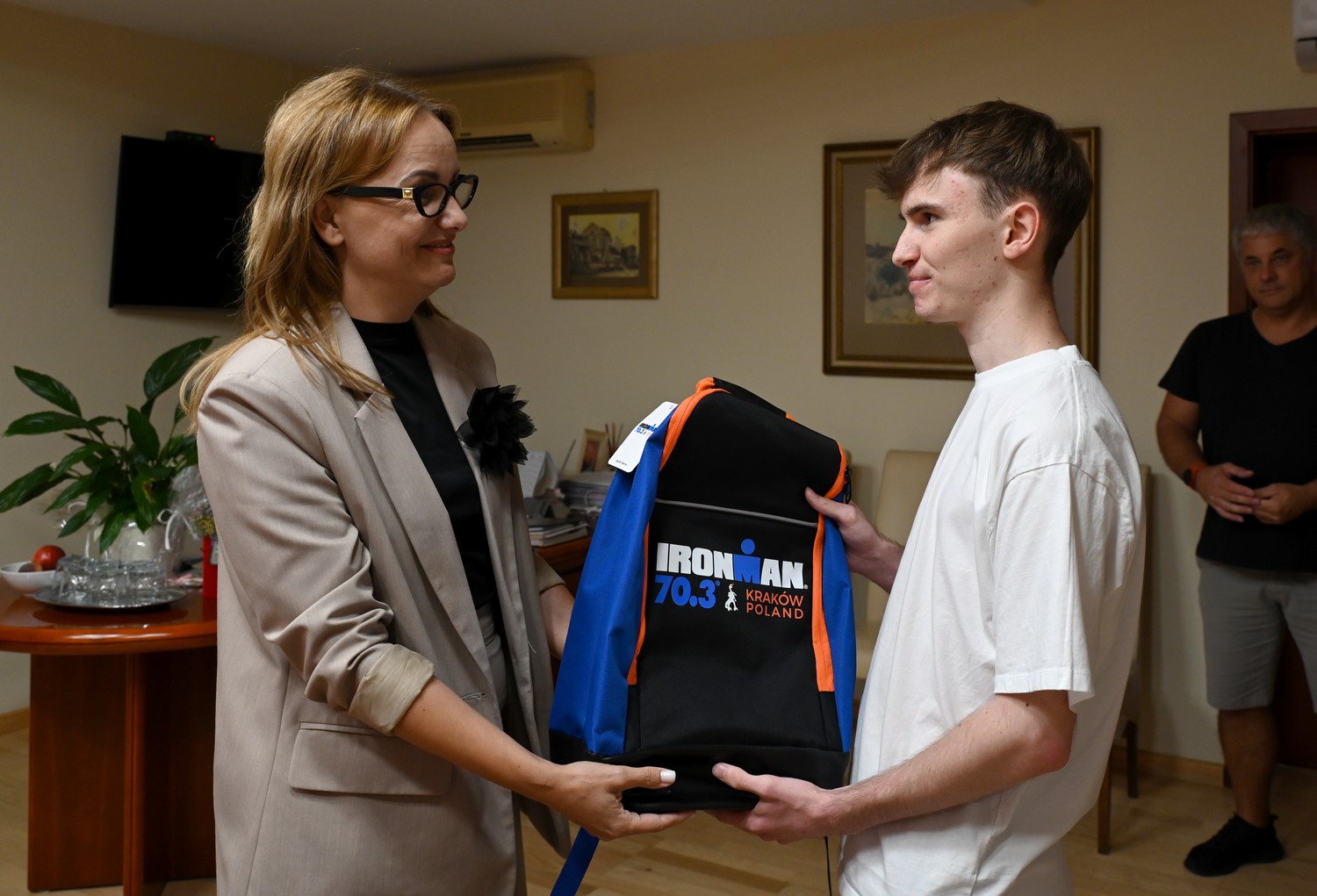 Podczas spotkania Gospodarz Solnego Grodu pogratulowała laureatom, wręczając im nagrody w postaci plecaków dedykowanych wydarzeniu IRONMAN, z zawartością bocheńskich gadżetów. Burmistrz podziękowała również za nadesłane fotografie, które nie tylko oddają emocje towarzyszące uczestnikom tej części zawodów, lecz także ukazują piękno naszego miasta.