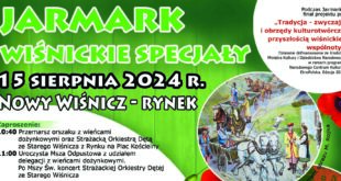 15 sierpnia 2024 r. na wiśnickim rynku odbędzie się Jarmark Wiśnickie Specjały, w tym Gminne Dożynki oraz VIII Festiwal Kapel Weselnych.