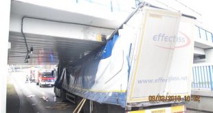 Kolejny raz kierowca samochodu ciężarowego zlekceważył znaki drogowe ustawione przed wiaduktem kolejowym na ulicy Wygoda. Skutkiem tego niefrasobliwego zachowania było zaklinowanie się ciągnika siodłowego MAN z naczepą pod wiaduktem. Uszkodzeniu uległy pojazd, wiadukt i towar przewożony na naczepie. Zdarzenie miało miejsce 9 marca, w godzinach porannych i spowodowało wyłączenie tej części ulicy na blisko 2 godziny. Kierowca ciężarowego Man-a nie został ...