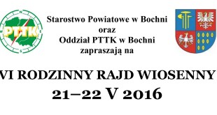 Starostwo Powiatowe w Bochni oraz Oddział PTTK w Bochni zapraszają na VI RODZINNY RAJD WIOSENNY (21–22 V 2016 r.) po szlakach BESKIDU MAKOWSKIEGO. Więcej info na plakatach poniżej.