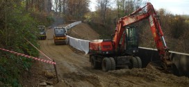 Roboty przy zadaniu pn. „Zabezpieczenie i stabilizacja osuwiska wraz z usunięciem skutków w ciągu drogi powiatowej nr 2071K Łąkta Górna-Łapanów w m. Ujazd na dz. nr 160,69,68 w km 5+722-5+922” rozpoczęły się w lipcu 2013r.
