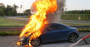 Na autostradzie A4 spłonęło Audi TT
