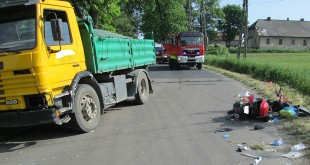W dniu 30.05.2016 r. w godzinach rannych, w miejscowości Poręba Spytkowska (powiat brzeski) na łuku drogi doszło do tragicznego wypadku, w którym uczestniczył samochód ciężarowy Scania i skuter. Kierujący motocyklem odniósł rozległe obrażenia ciała i został przetransportowany do szpitala przez Lotnicze Pogotowie Ratunkowe. W działaniach udział brały dwa zastępy z Jednostki Ratowniczo – Gaśniczej w Brzesku. Utrudnienia w ruchu drogowym ...