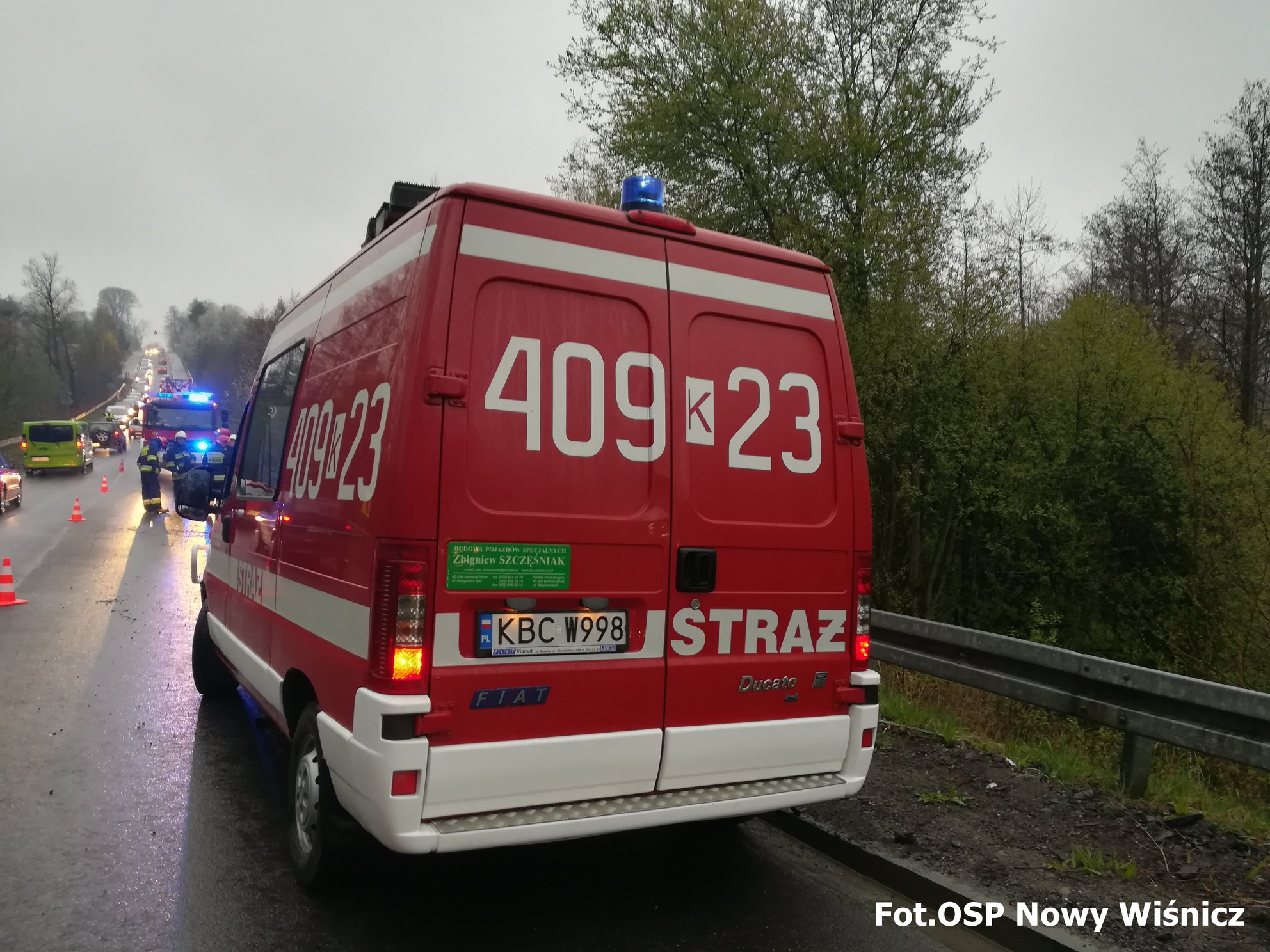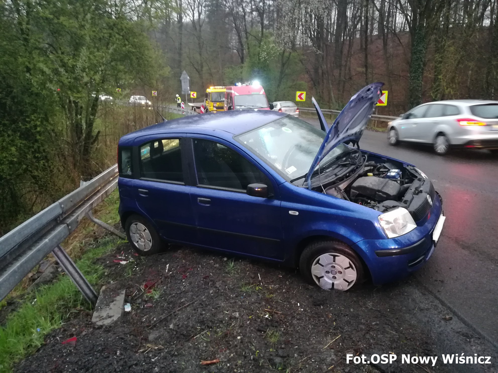 W piątek 12 kwietnia br. o godz. 18:21 strażacy ochotnicy z Nowego Wiśnicza kolejny raz zostali zadysponowani do miejscowego zagrożenia w miejscowości Kopaliny. Na śliskiej jezdni (na zakręcie) samochód osobowy wpadł w poślizg uderzając w barierę energochłonną. Biorąca udział w zdarzeniu nie doznała żadnych urazów.