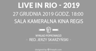 Ostatnie w tym roku spotkanie z red. Jerzym Skarżyńskim (radio Kraków) w ramach cyklu Ilustrowana Muzyką Historia Rocka odbędzie się 27 grudnia 2019 roku, jak zwykle w sali kameralnej MDK o godz. 18. Bohaterami wykładu będą członkowie grupy Red Hot Chilli Peppers a zilustrują go fragmenty koncertu Live in Rio.
