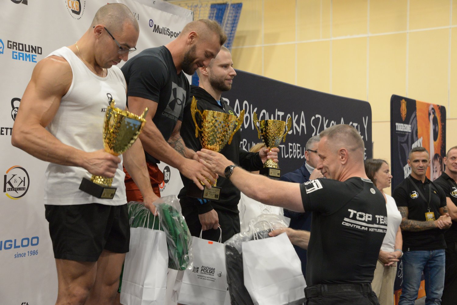 Na najlepszych uczestników czekały puchary, nagrody finansowe i rzeczowe i pamiątkowe medale, które wręczyli podczas dekoracji: Starosta Bocheński Adam Korta, Burmistrz Miasta Bochnia Magdalena Łacna oraz Właściciel i Szef Wyszkolenia Centrum Kettlebell Polska, Dyrektor i Team Leader StrongFirst Polska Dariusz Waluś.