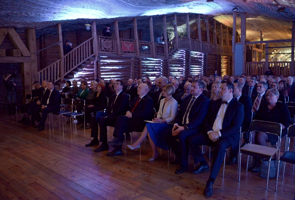 Już tradycyjnie, co roku spotykamy się właśnie tutaj w bocheńskiej Kopalni Soli podczas uroczystości poświęconej lokacji Miasta Bochnia i wręczenia przy tej okazji wyróżnienia Boleslaus Dux Fundator dla wybitnych postaci zasłużonych dla naszego miasta, dla Bochni. Jak co roku chciałbym także dokonać krótkiego podsumowania ubiegłego, 2019-tego roku.