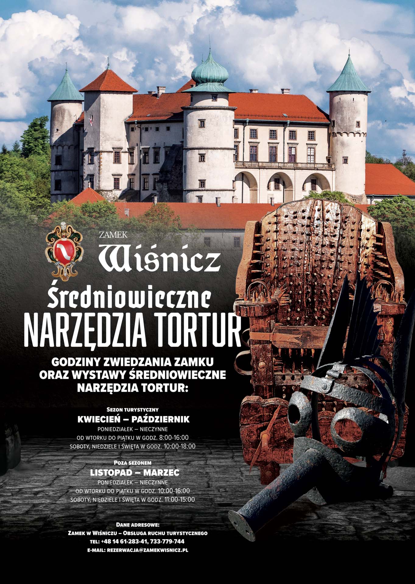 Należy dodać, że tzw. „Czarna księga złoczyńców wiśnickich”, dokument historyczny, wymienia dwa miejsca, w których w mieście były sale tortur – są to kazamaty wiśnickiego zamku i podziemia miejskiego ratusza. I właśnie do zamkowych kazamatów zapraszamy na tą wyjątkową wystawę.
