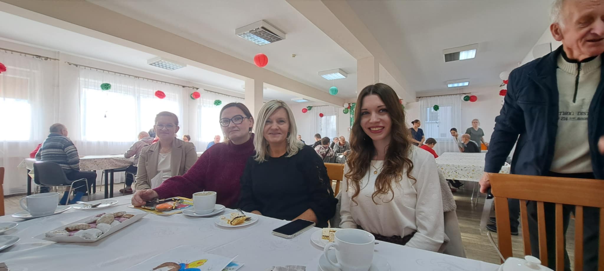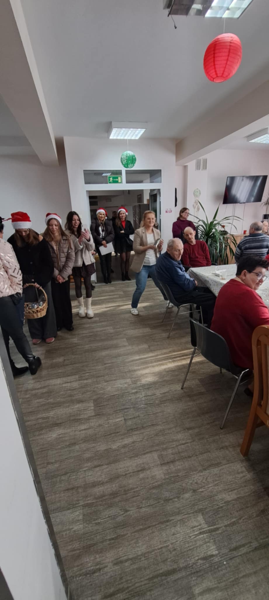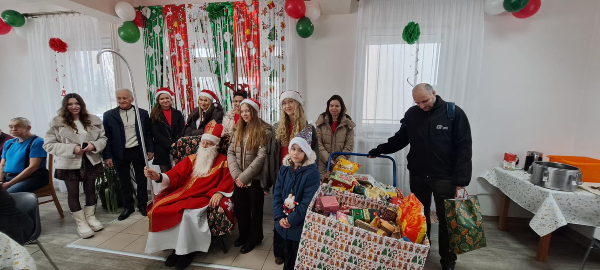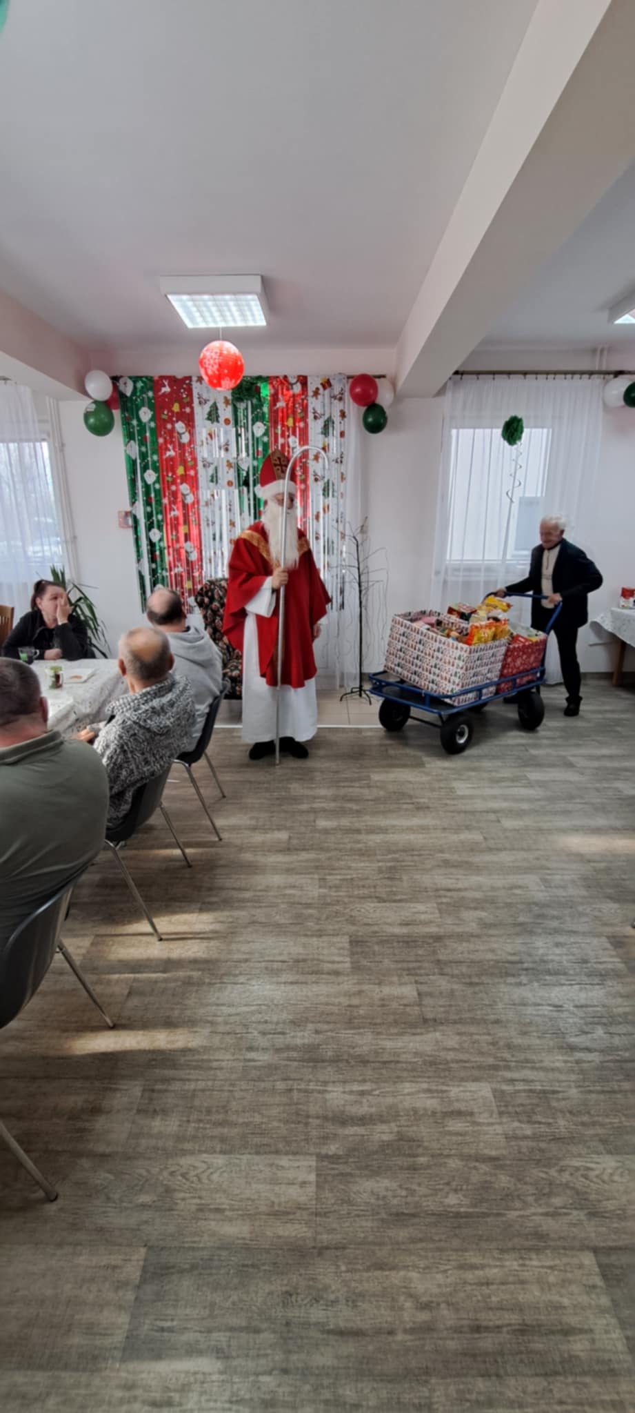 Podopieczni DPS przygotowali specjalne miejsce dla św. Mikołaja z dalekiego kraju i poczęstunek. Były wierszyki i rysunki podarowane przez przebywających tam pacjentów. Poczęstunek dla wszystkich przybyłych, przywitanie i pomoc logistyczna przez Magdalenę Szewczyk. Na sam koniec wszyscy machali przez okna z uśmiechem. Tego roku został przekazany czek na zakup przewijaków dla niemowląt. Nie byłoby czeku, gdyby nie kawiarenka kl. 3 ze Szkoły Podstawowej nr 1 w Bochni. Dar serca dzieci komunijnych oraz wiele prezentów zgromadzonych w sklepach Supermarket ColdLux 1, 2, 3 i życzliwości P. Włodzimierzowi i Bogdanowi Chwastek.