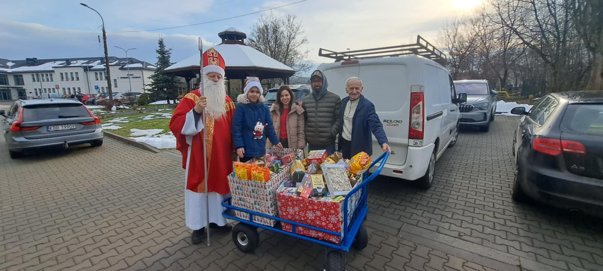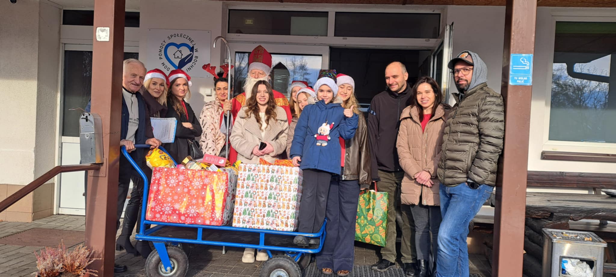 Następnie św. Mikołaj udał się do Domu Pomocy Społecznej w Bochni, aby również rozdać pierniczki od Cukierni Tradycyjnej Wojciech i Izabela Nakielny z Bochni oraz kawy, batoniki, słodycze, chrupki zebrane podczas zbiórki w Szkole Podstawowej w Gawłowie im. Mikołaja Kopernika.