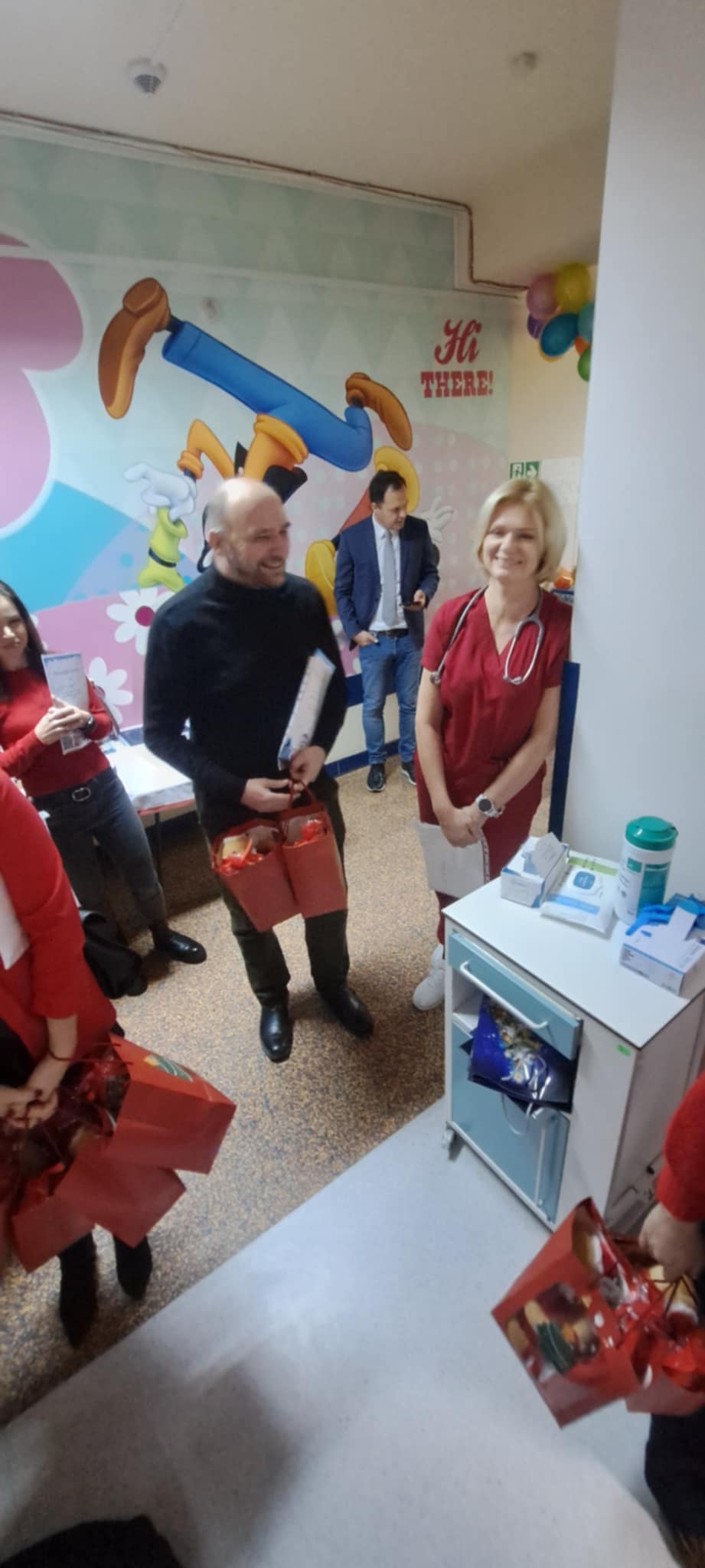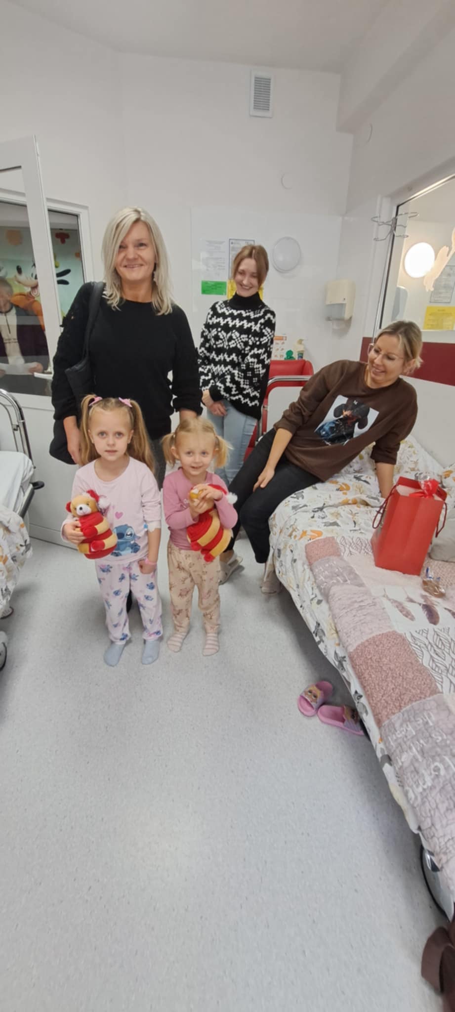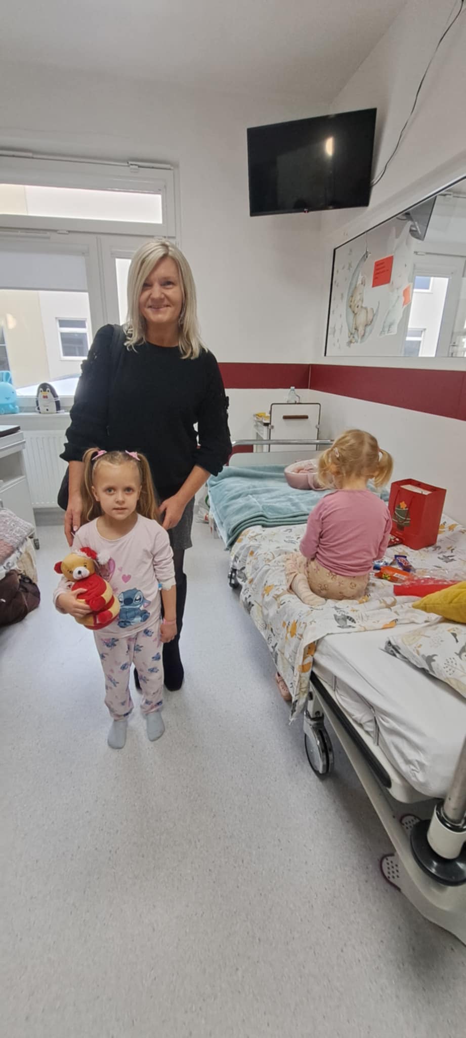 Po rozdaniu prezentów u maluchów członkowie stowarzyszenia udali się na oddział ginekologiczno-położniczy, aby przekazać 200 pierników dla pacjentek oraz słodkie upominki i herbatę na dyżurkę lekarską. Radość i zaskoczenie zawitała na oddział, kiedy to po raz pierwszy zawitał tam św. Mikołaj.