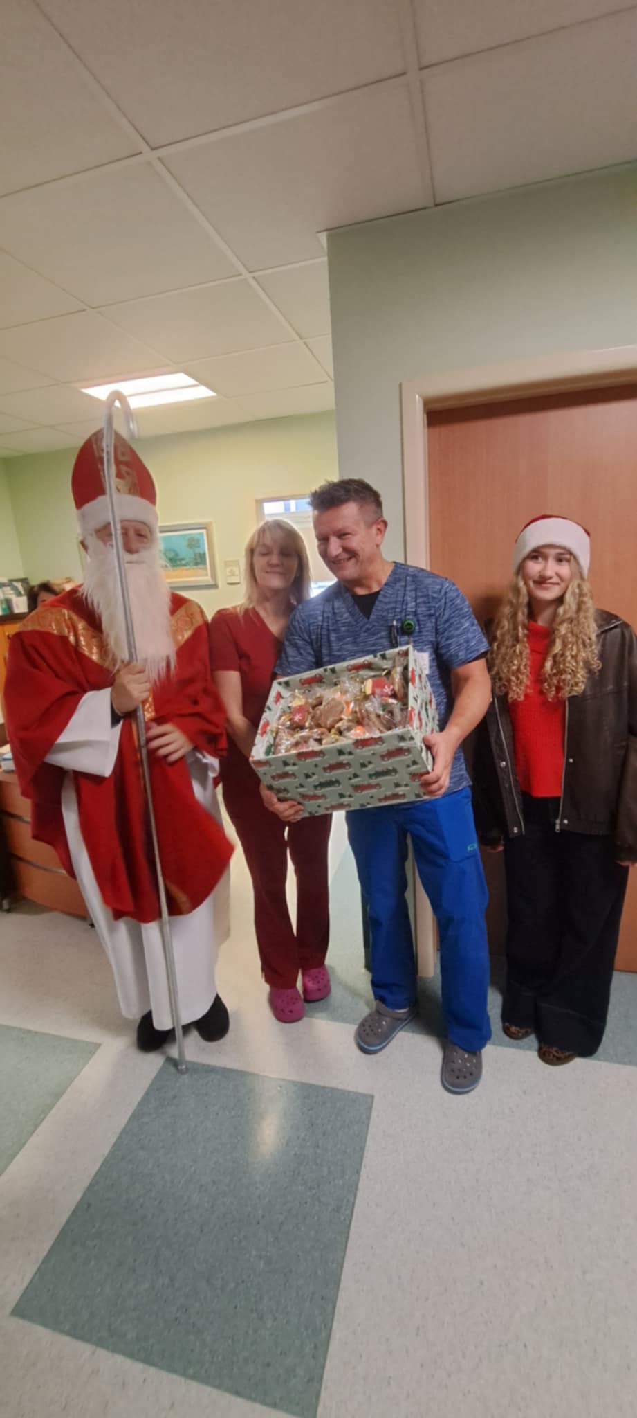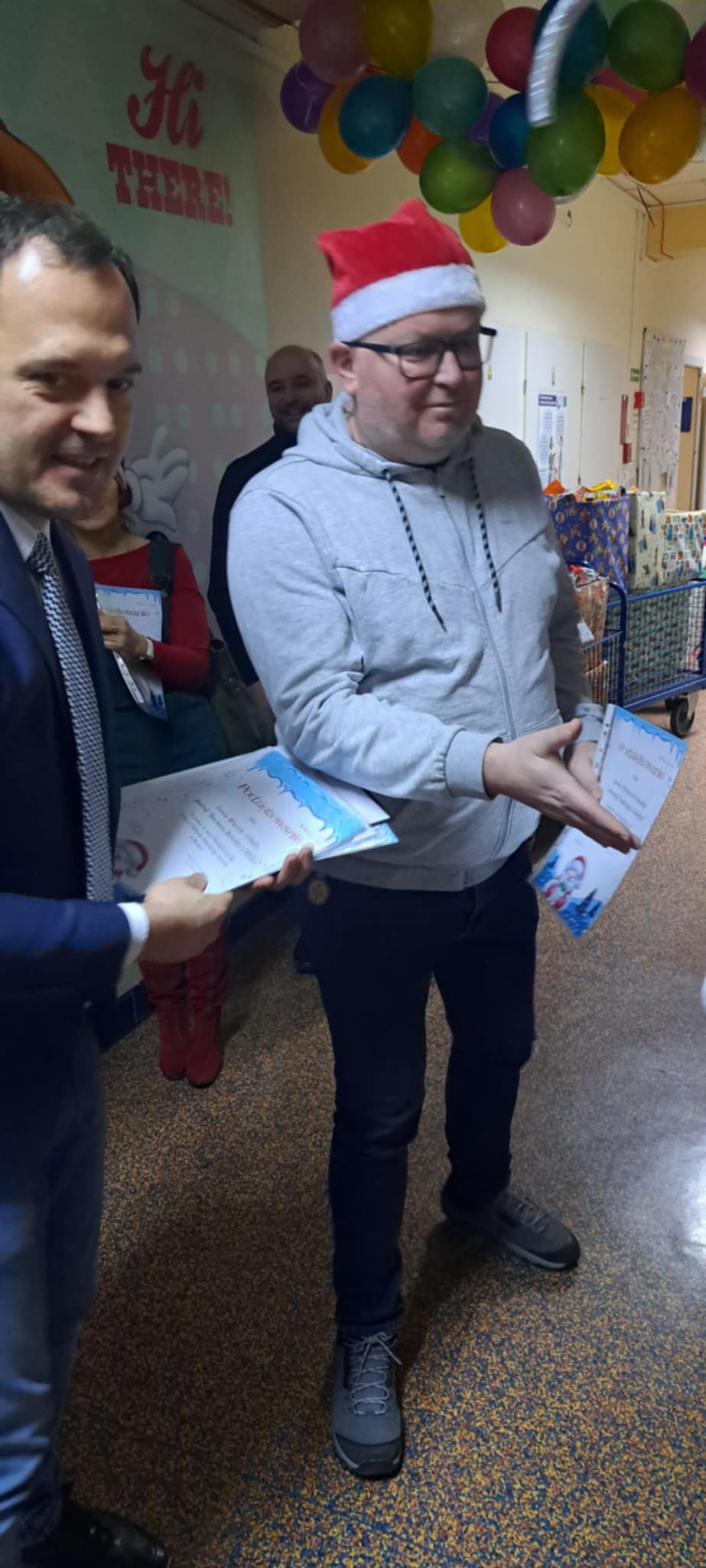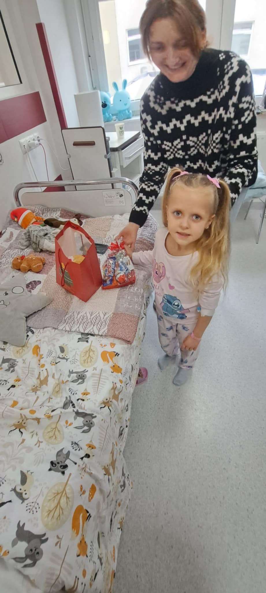 Po rozdaniu prezentów u maluchów członkowie stowarzyszenia udali się na oddział ginekologiczno-położniczy, aby przekazać 200 pierników dla pacjentek oraz słodkie upominki i herbatę na dyżurkę lekarską. Radość i zaskoczenie zawitała na oddział, kiedy to po raz pierwszy zawitał tam św. Mikołaj.