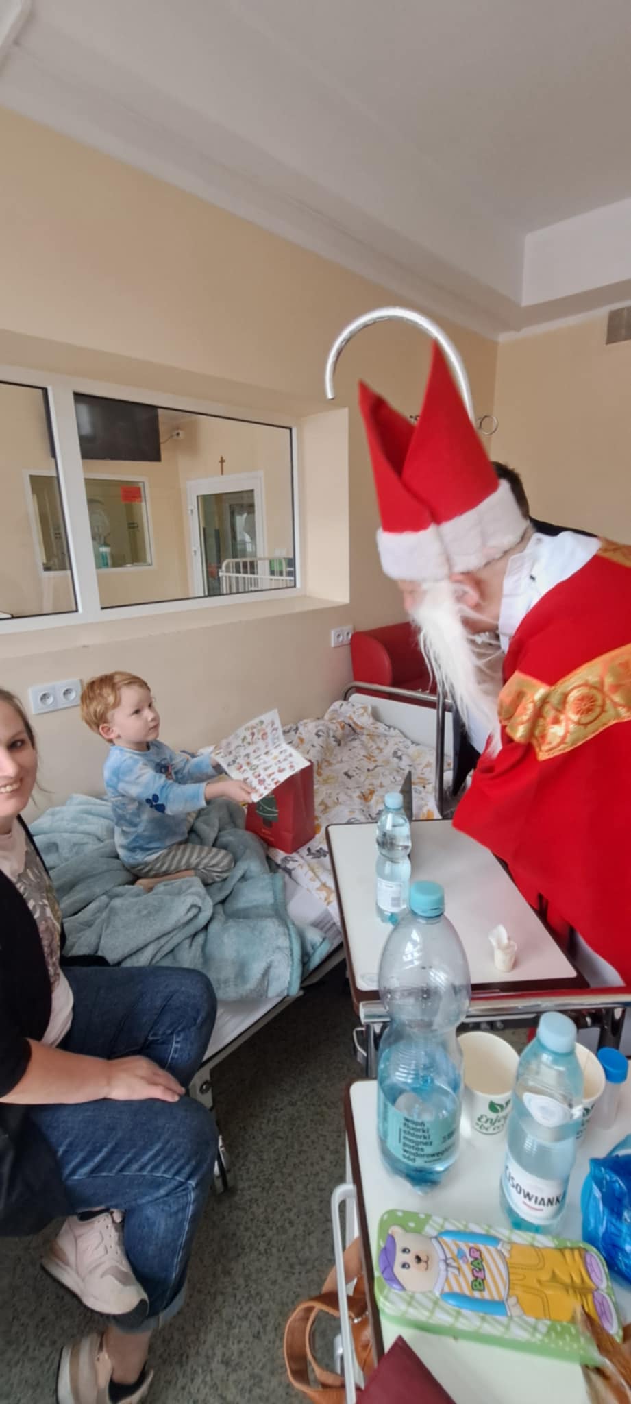 W rolę Świętego Mikołaja wcielił się ks. dr Marek Mierzyński, który rozdawał prezenty i przytulał małych pacjentów mówiąc, że Mikołaj ma moc i siłę do niesienia radości.