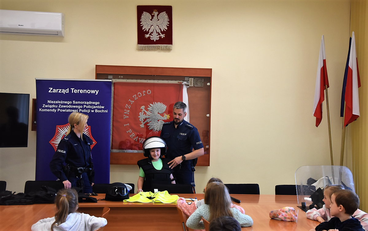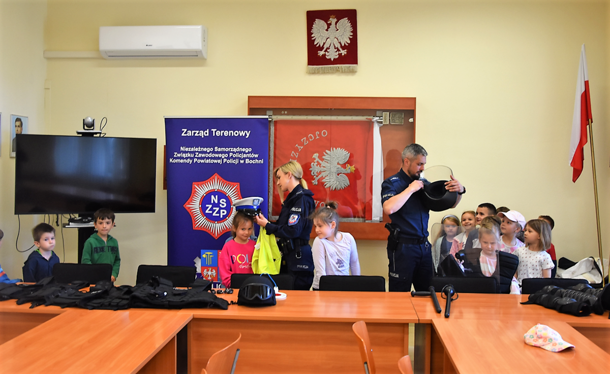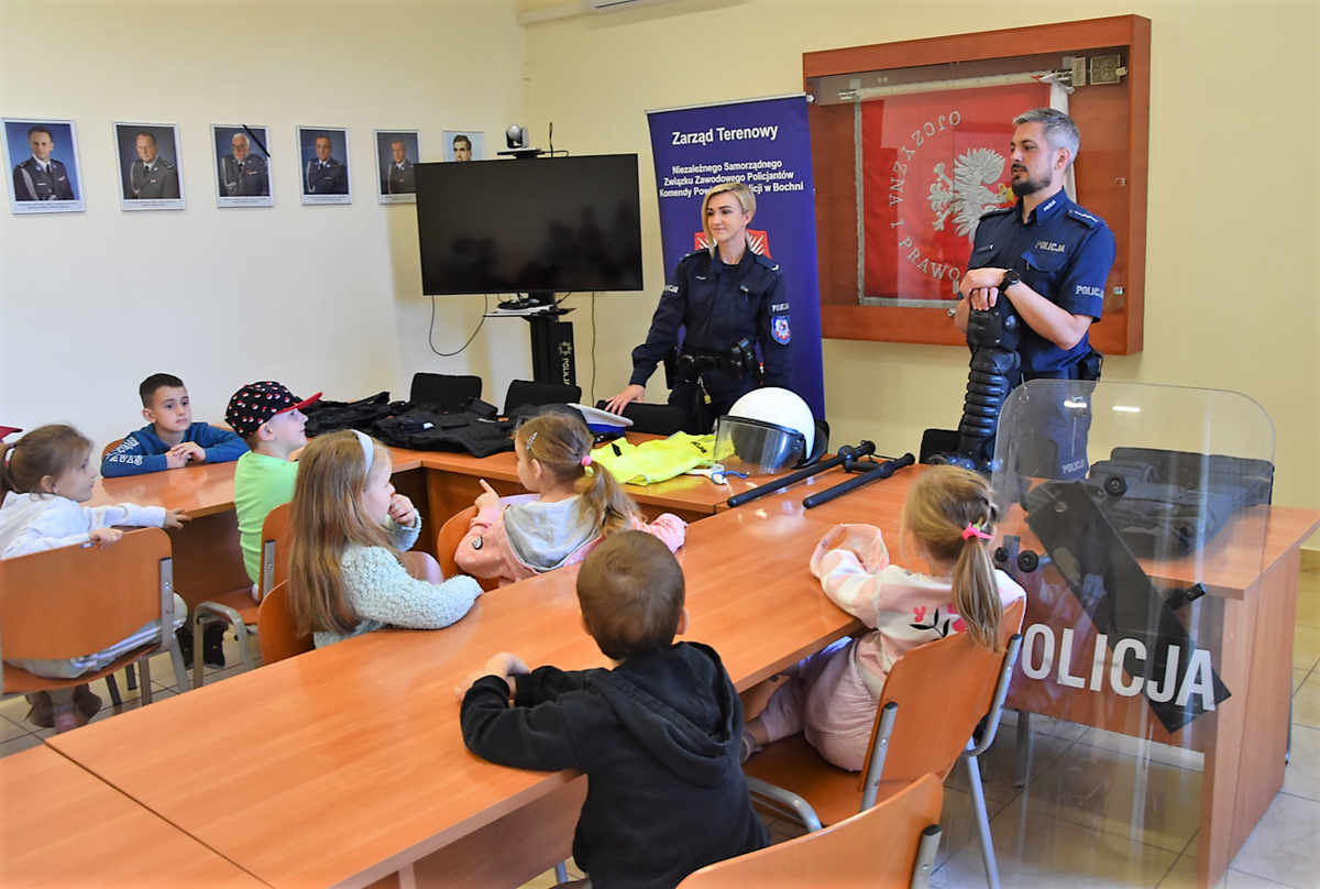 Policjanci Zespołu ds. Nieletnich przygotowali spotkanie profilaktyczne dla uczniów Szkoły Podstawowej nr 5 w Bochni. Najmłodsi uczniowie placówki stawili się w Komendzie Powiatowej Policji w Bochni, gdzie mogli wysłuchać wielu porad związanych z bezpieczeństwem oraz zobaczyć policyjny sprzęt i radiowozy.