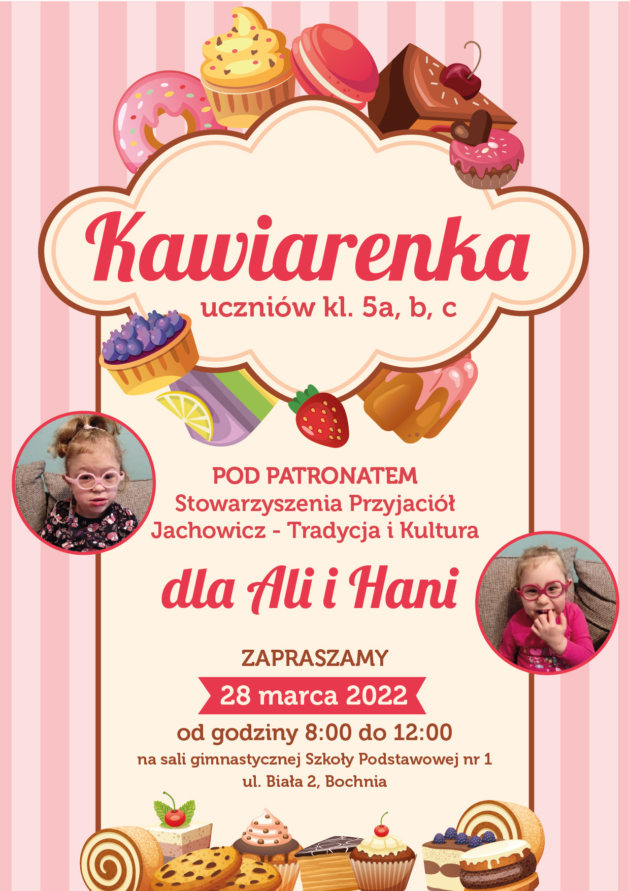 Z wielką radością zapraszają również na kawiarenkę charytatywną klasy 5, z której dochód w całości trafi na leczenie i rehabilitacje dziewczynek – wylicza Beata Drużkowska ze Stowarzyszenia.
