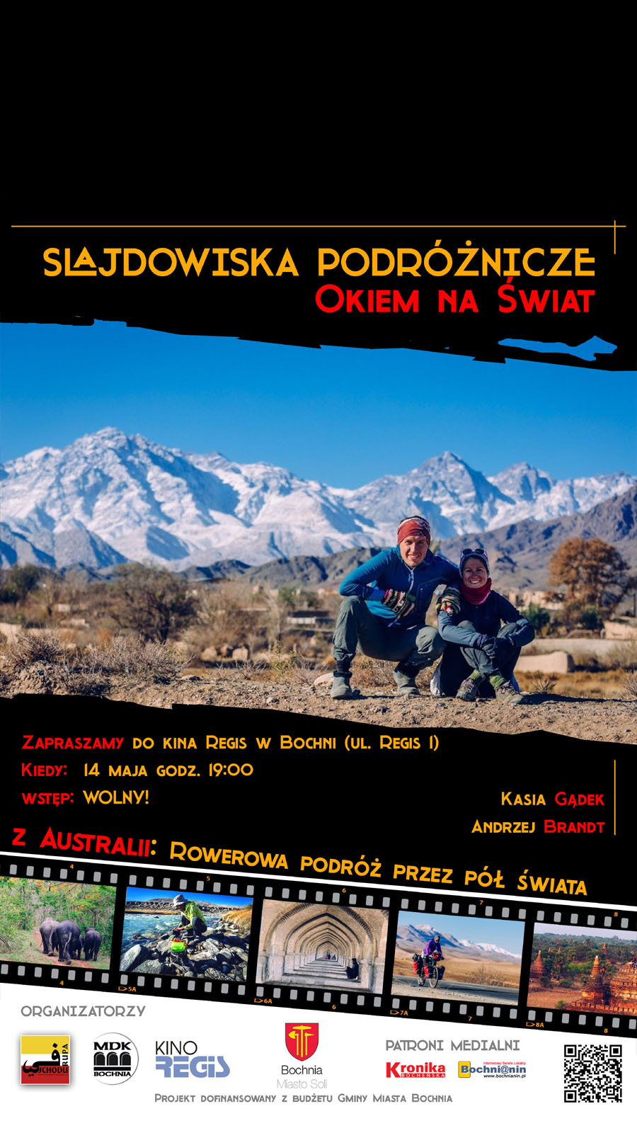 W tę podróż uczestników spotkania zabiorą Kasia Gądek oraz Andrzej Brandt – pasjonaci wypraw rowerowych i trekkingowych, którzy od lat przemierzają świat na własnych zasadach. W ich opowieści nie zabraknie zarówno spektakularnych ujęć z rowerowej trasy, jak i kadrów z górskich wędrówek.