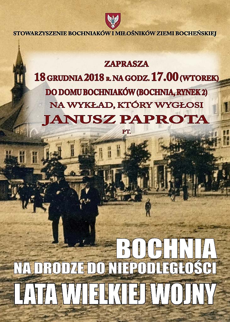 Tematem wykładu jest „Bochnia na drodze do niepodległości – lata Wielkiej Wojny”.
