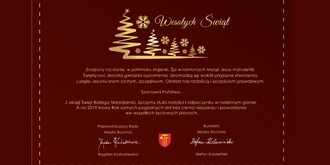 Życzenia od Burmistrza i Przewodniczącego Rady Miasta Bochnia 25 grudnia 2018 Materiały przesłane dodaj komentarz Facebook Twitter Google+ Pinterest LinkedIn 2018-12-25